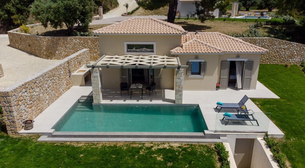 Named after Charis, one of the graces of Zeus, the villa embodies joy, kindness, and gratitude—qualities that are felt in every corner of this thoughtfully crafted retreat. Set on a historic plot known as “Zeus Orchard”, once cultivated by monks for wine and olive oil, the villa is surrounded by lush Ionian vegetation, olive groves, and rolling green fields.