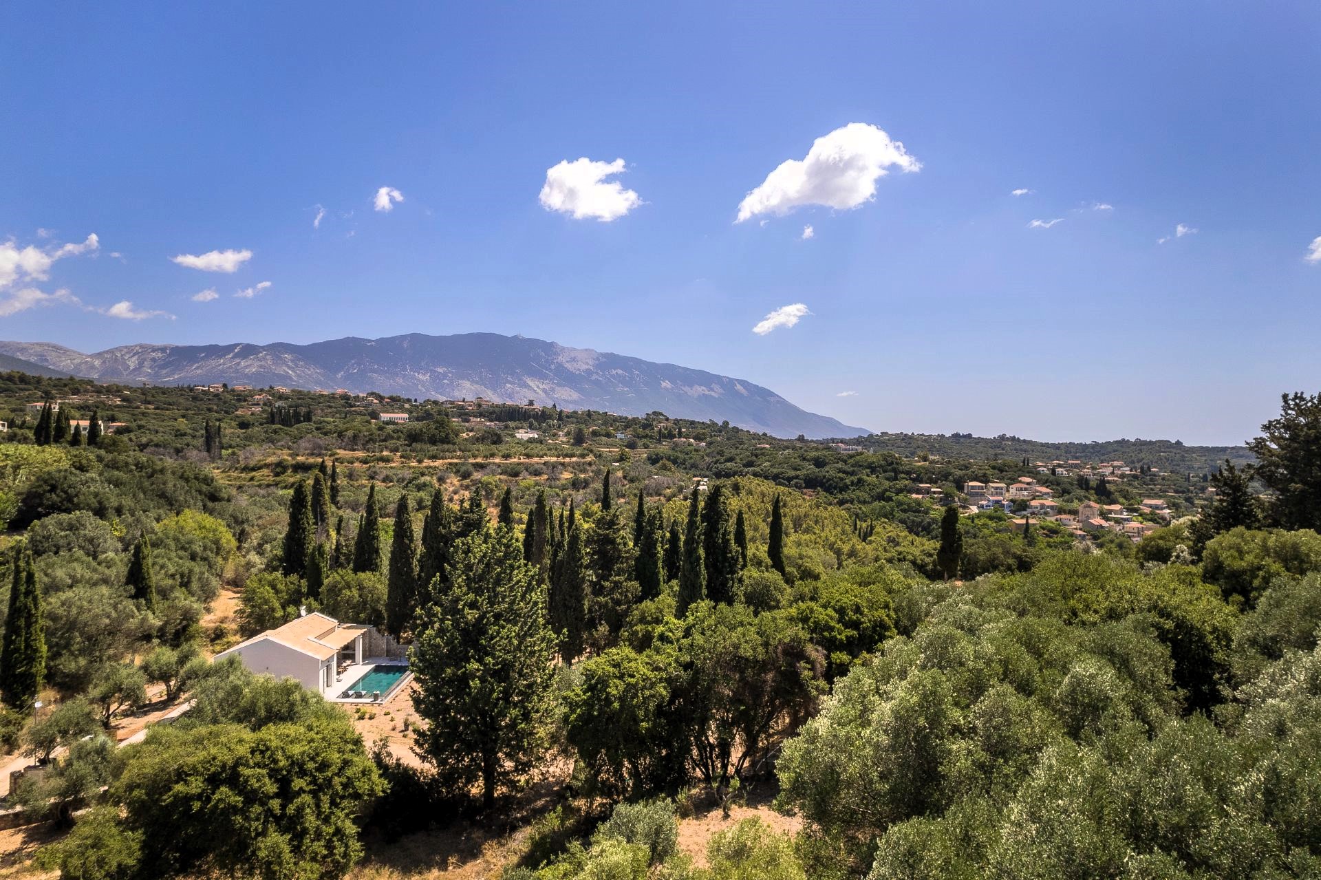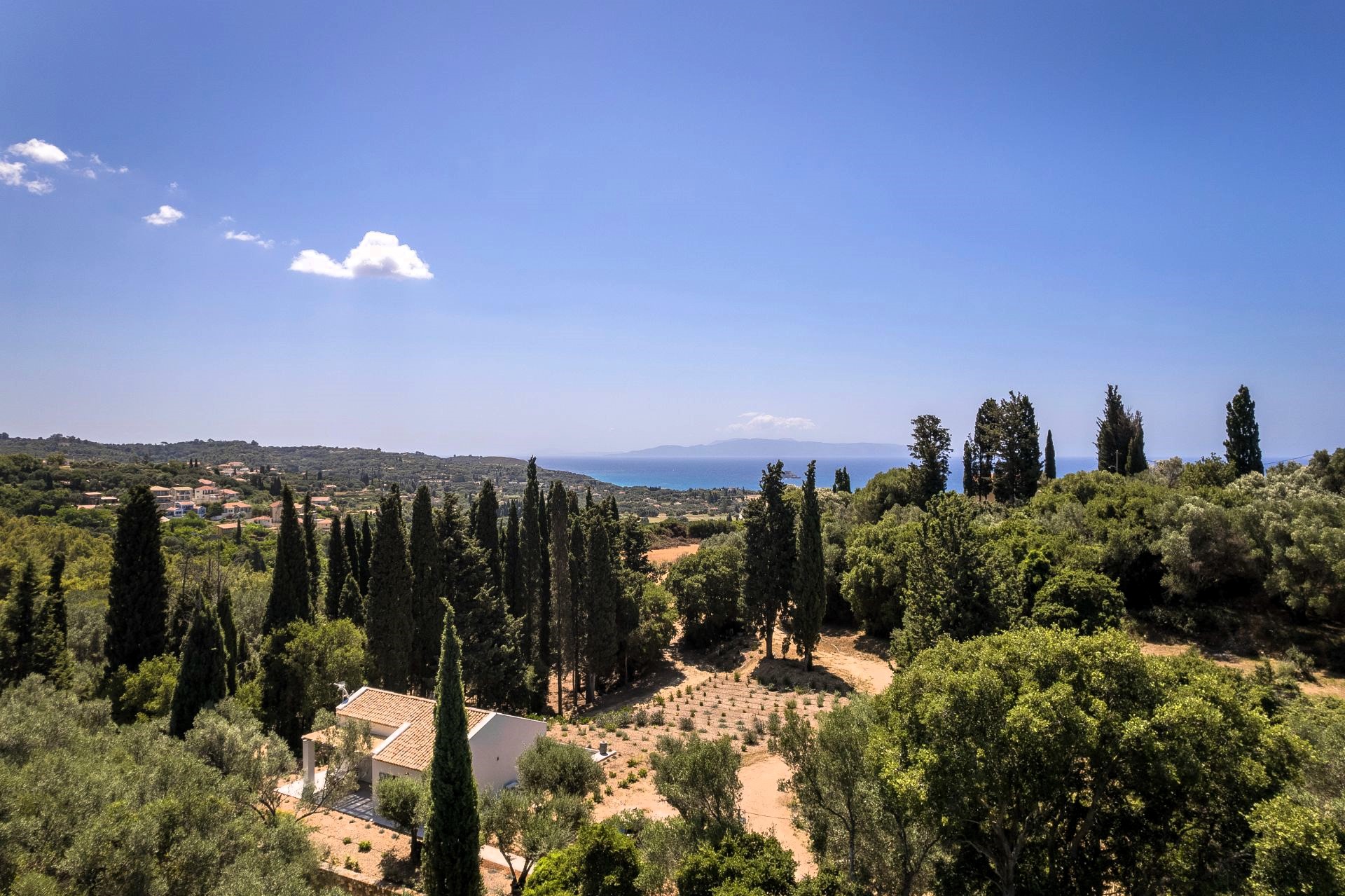 Sarlata’s charming red rooftops and traditional Ionian architecture are surrounded by olive groves and tall cypress trees that stretch toward the sea. Within a 5-minute drive, you’ll find cozy tavernas and convenient mini markets in nearby Lakithra and Svoronata. The sandy shores of Avithos, Ai Helis, and Ammes beaches are also just 8–10 minutes away.