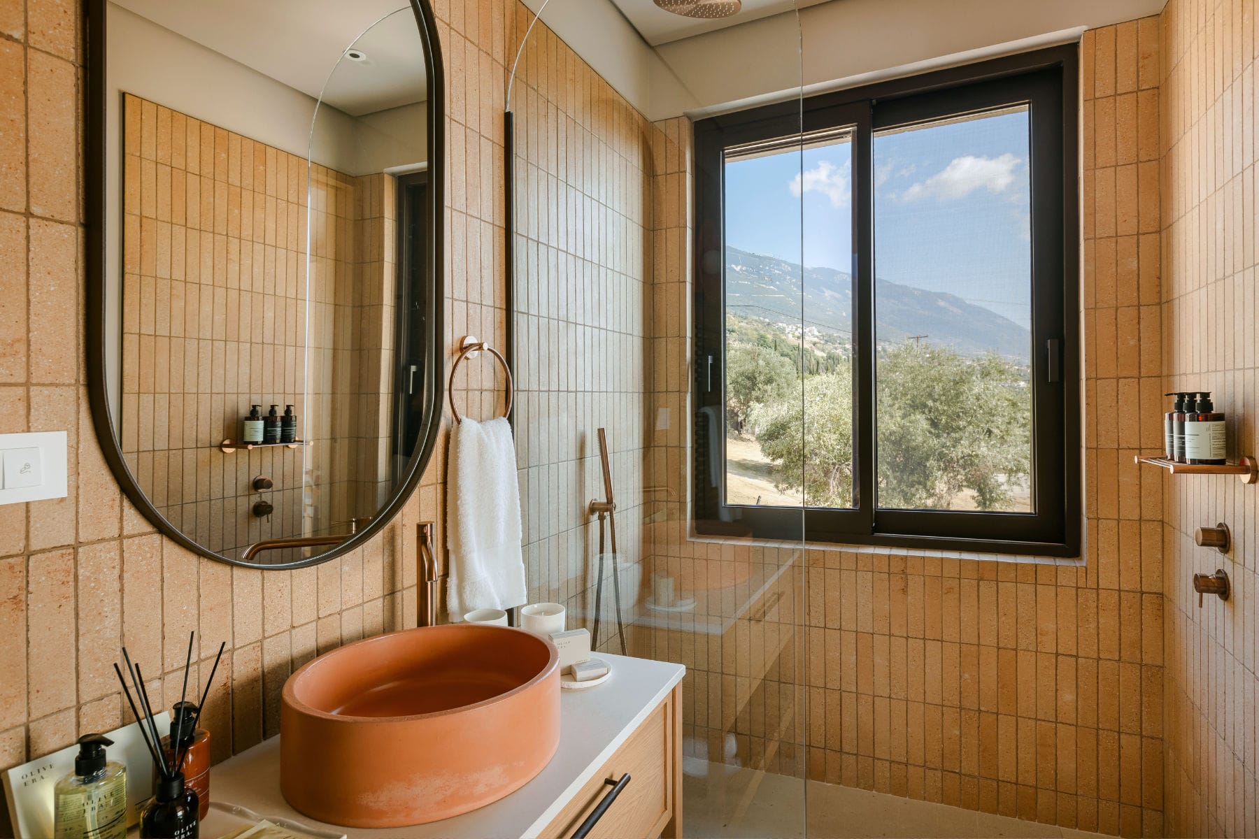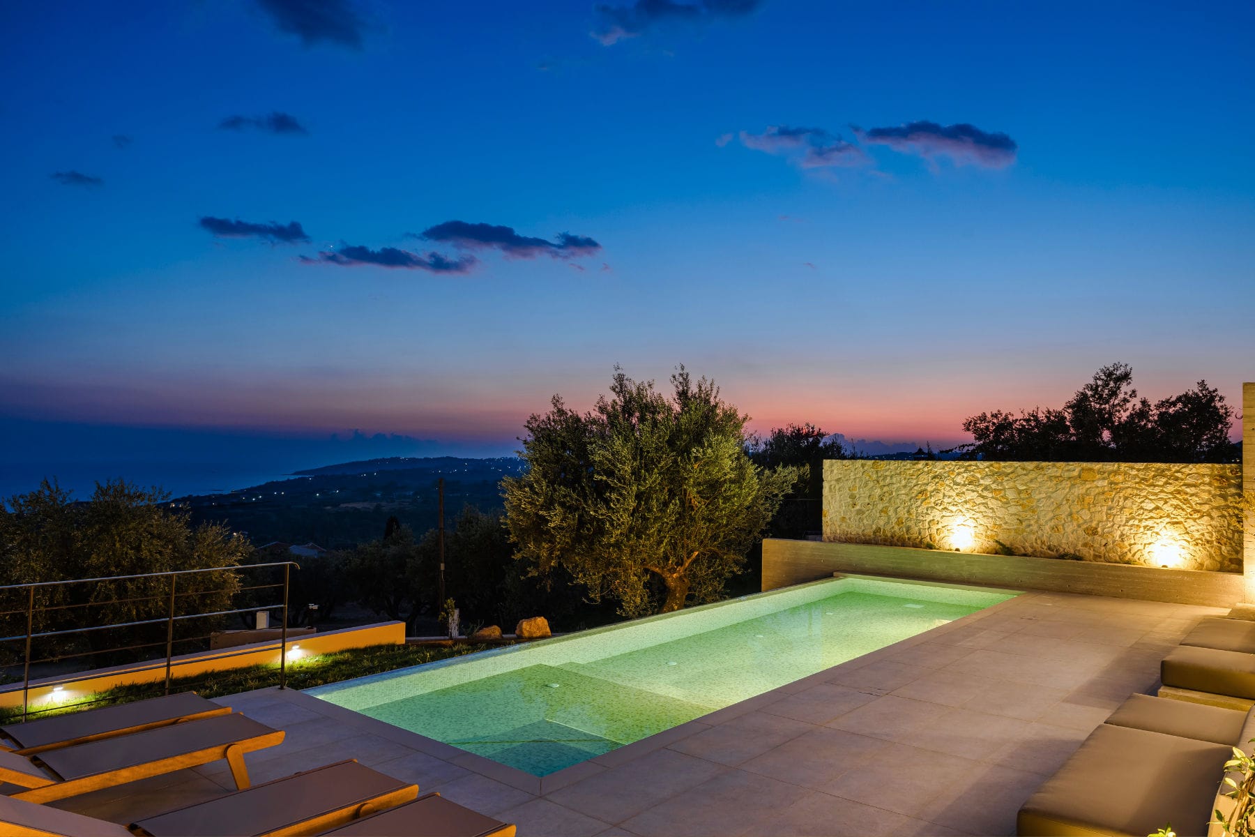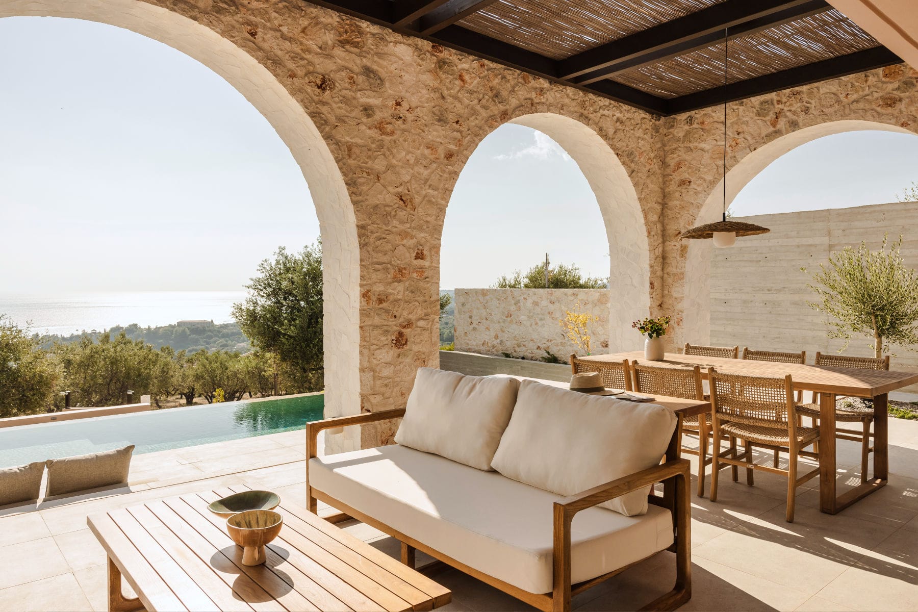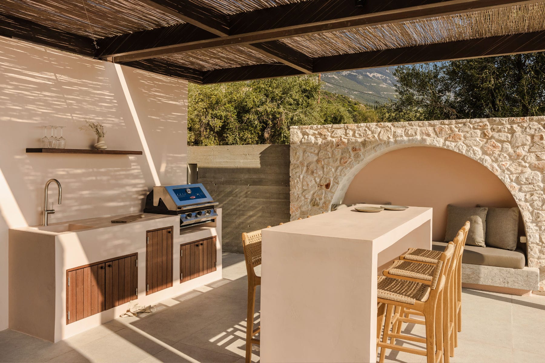 Deluxe Villa is located at the southern end of the Kerami Property with both sea and mountain facing views and is in close proximity to the kids playground. It features one King sized bed and one queen sized bed, spread across 100 m2 of refined living space.