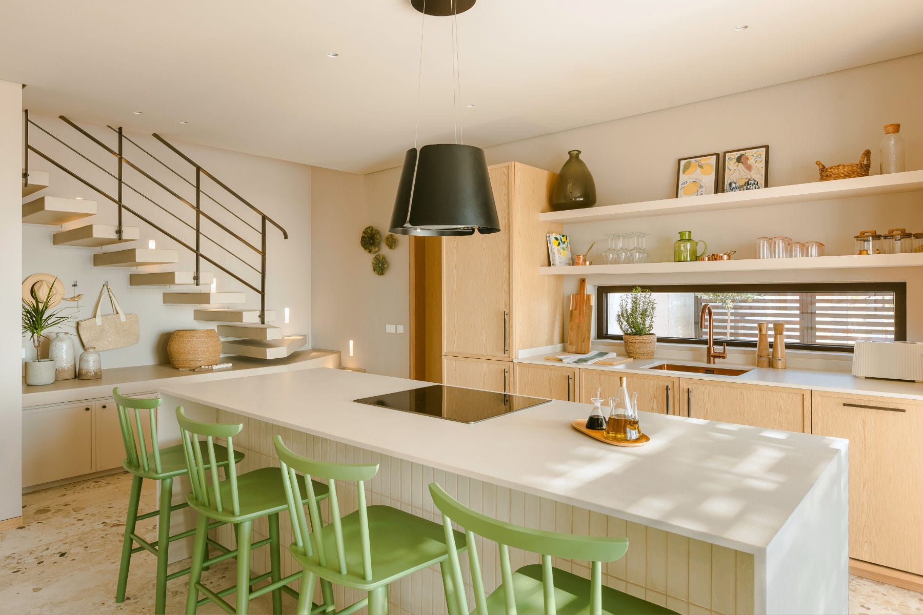 This split – level villa is designed for ultimate comfort, featuring a spacious living room with a sleeper sofa, an exquisite dining area, and a fully equipped kitchen. The ground floor also includes a powder bathroom.