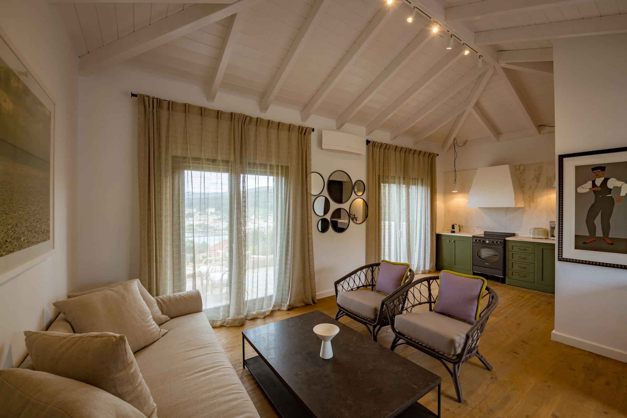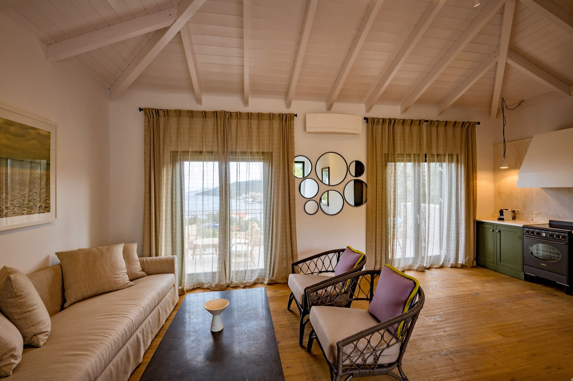 Ormos villa is a two-storey retreat, featuring its own private swimming pool, sun loungers, and beautifully landscaped gardens designed to ensure maximum privacy for every guest.