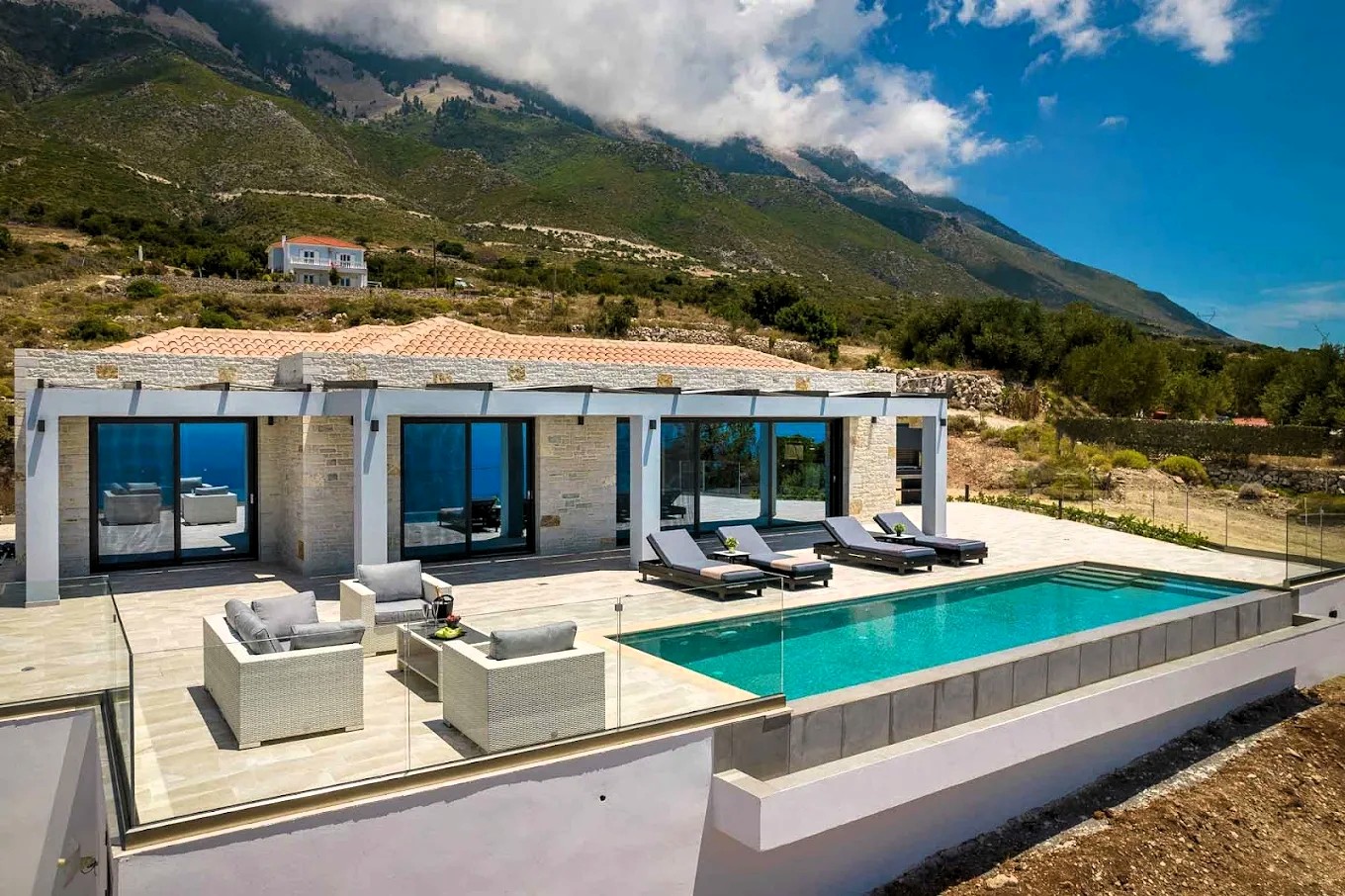 Located in Simotáta and only 2.3 km from Sisia Beach, Panorama Blue Kefalonia – Luxury villa in Lourdata provides accommodation with mountain views, free WiFi and free private parking.