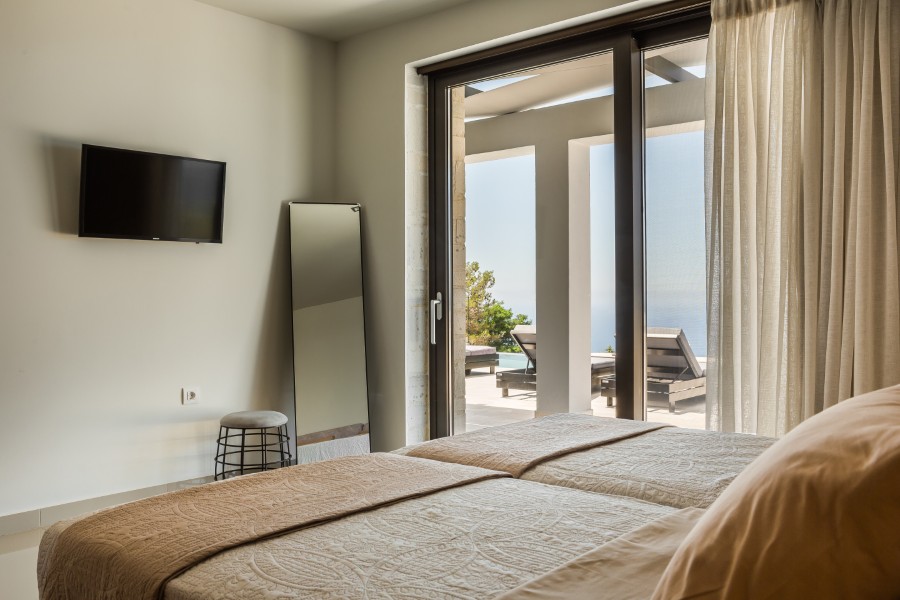 The villa is equipped with 2 bedrooms, 2 bathrooms, bed linen, towels, a flat-screen TV with satellite channels, a dining area, a fully equipped kitchen, and a terrace with sea views. Guests can take in the views of the pool from the balcony, which also has outdoor furniture. For added privacy, the accommodation has a private entrance and soundproofing.