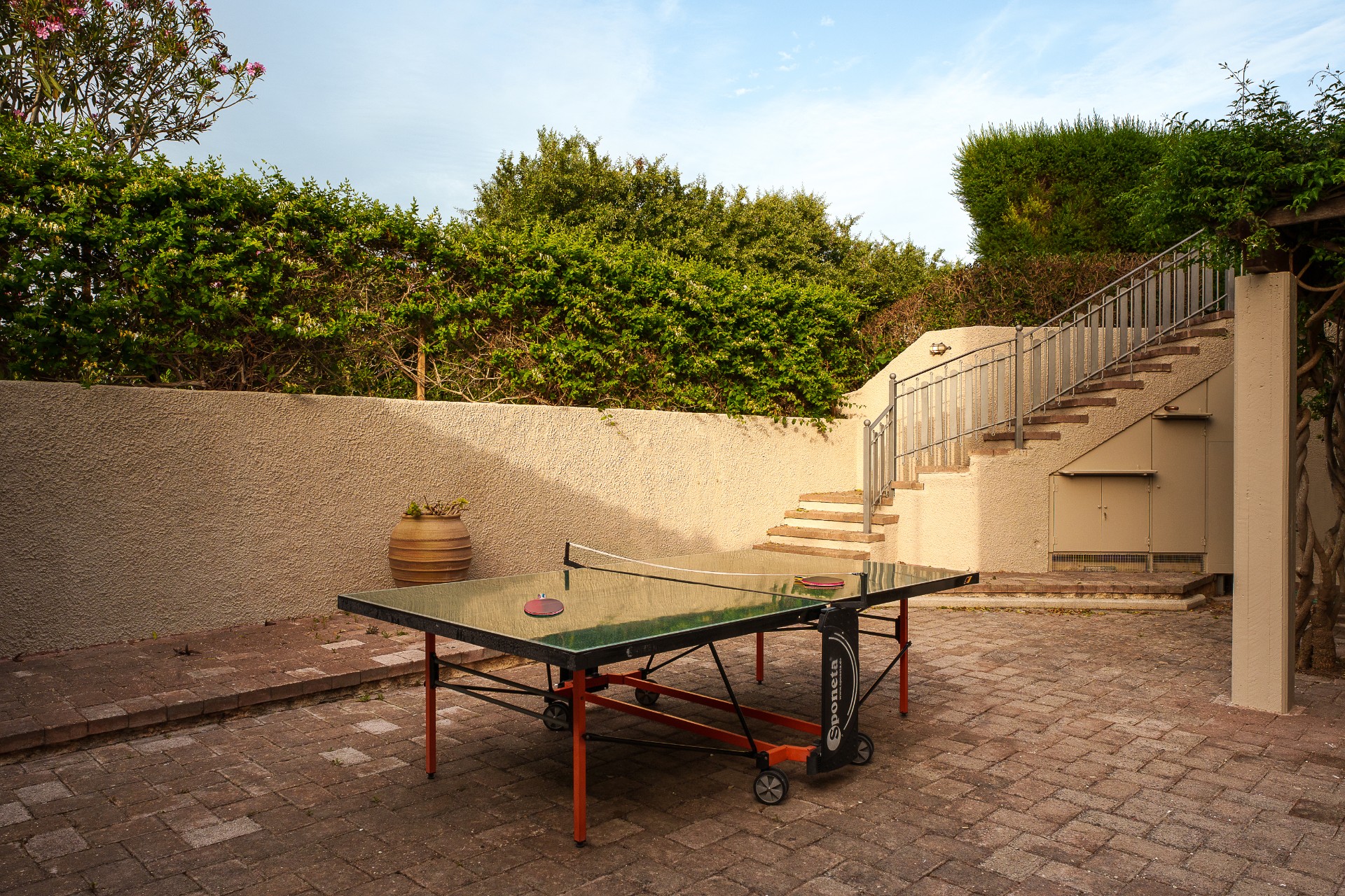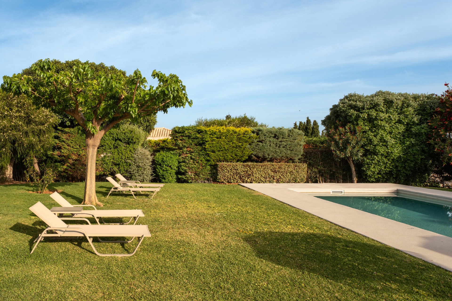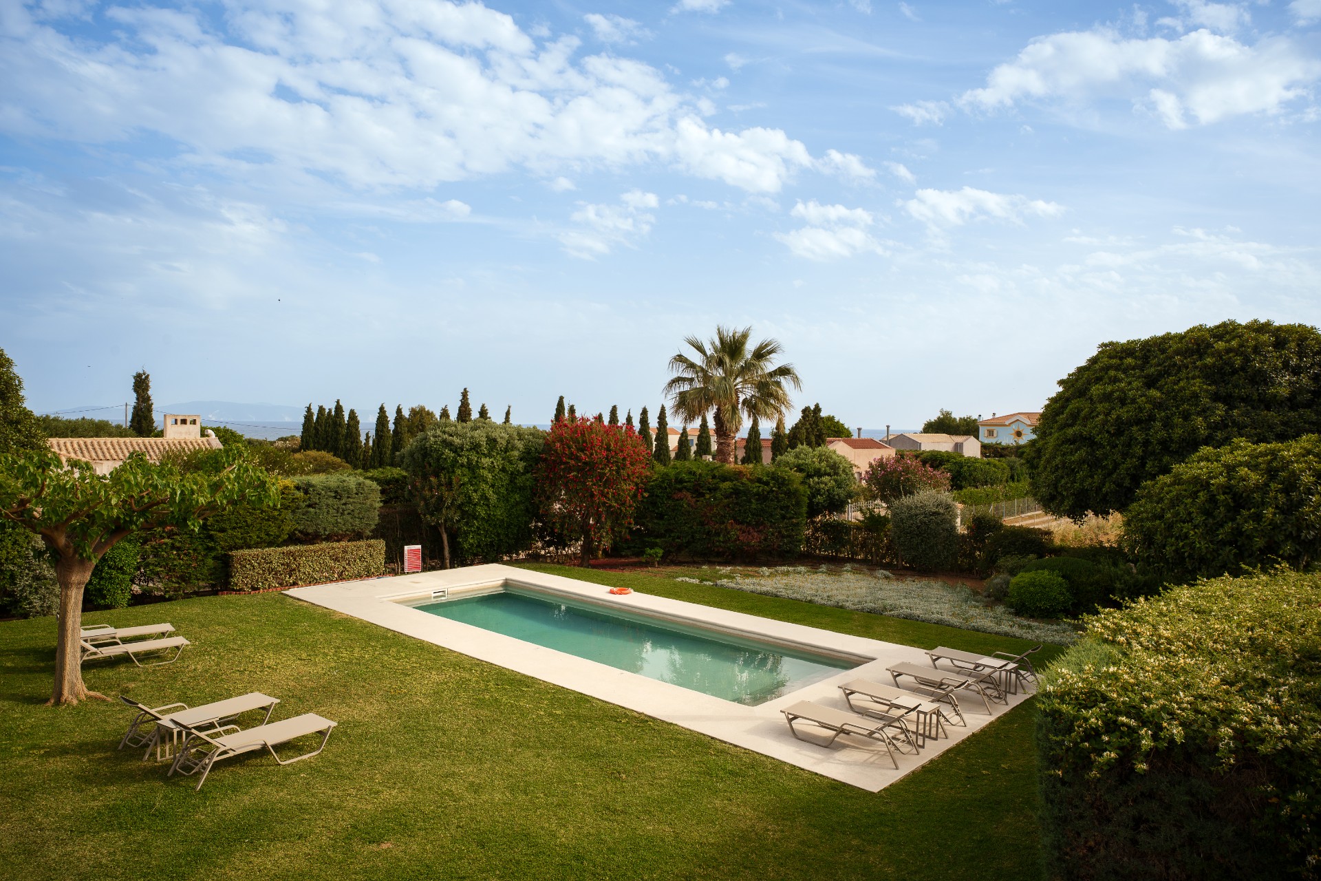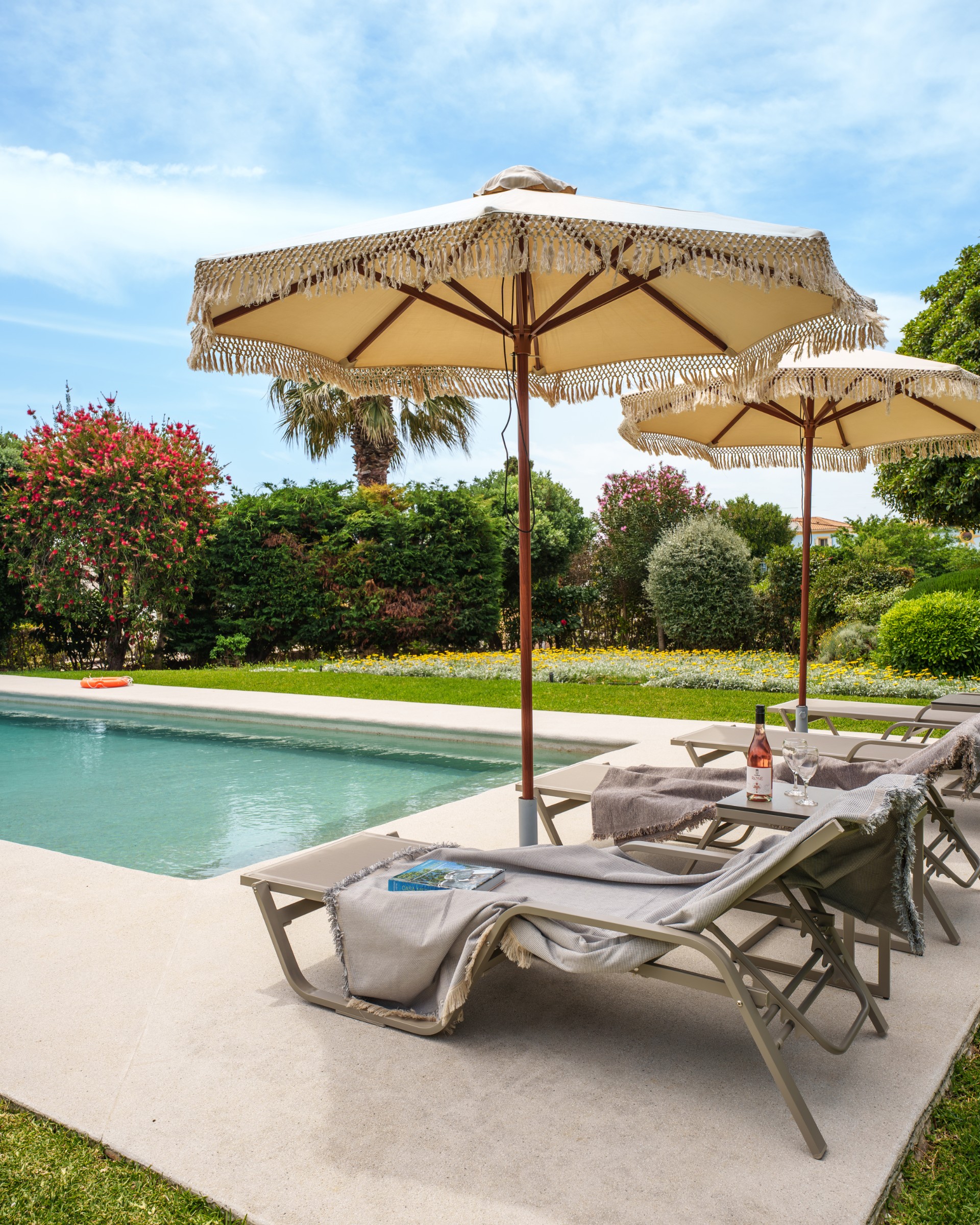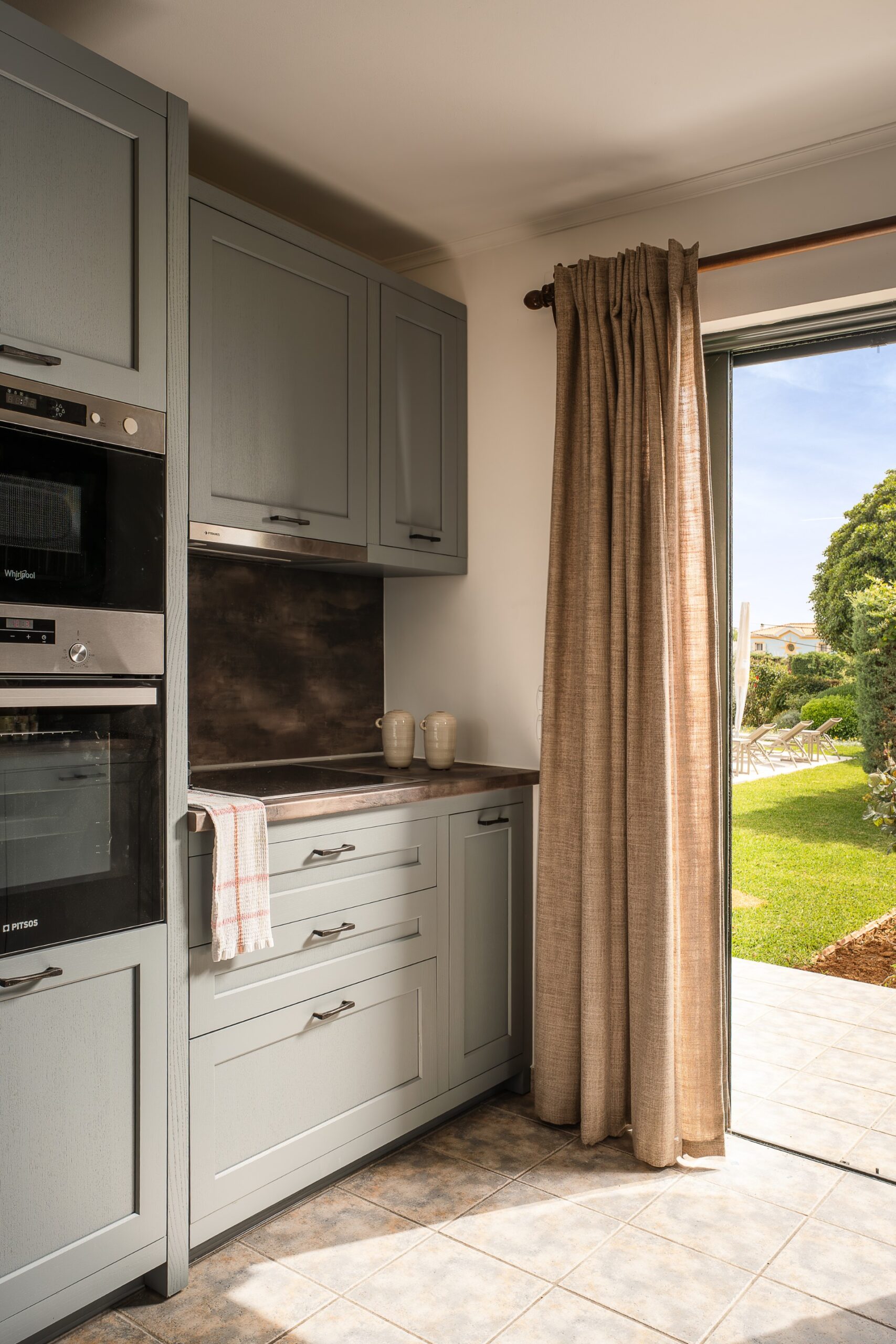 For added privacy, Villa Dionysus includes a separate bedroom annex with its own private patio area, perfect for guests seeking a quiet retreat. The traditional-style bedrooms are accented with subtle pops of colour, complementing the overall restful ambiance that extends throughout the home.