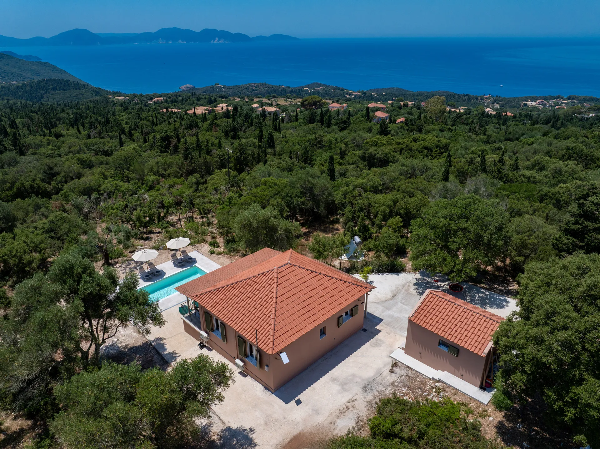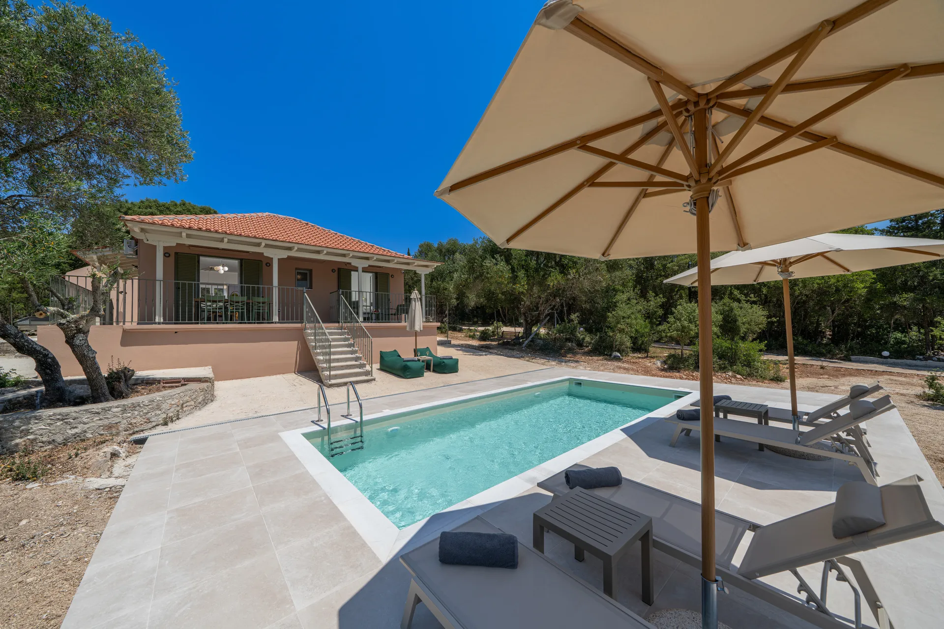 Located in a peaceful area just 10 minutes from Fiskardo, the villa offers convenient access to local beaches such as Emblisi Beach, Alaties Beach, and Agia Jerusalem Beach, as well as scenic walking paths leading to more secluded spots.