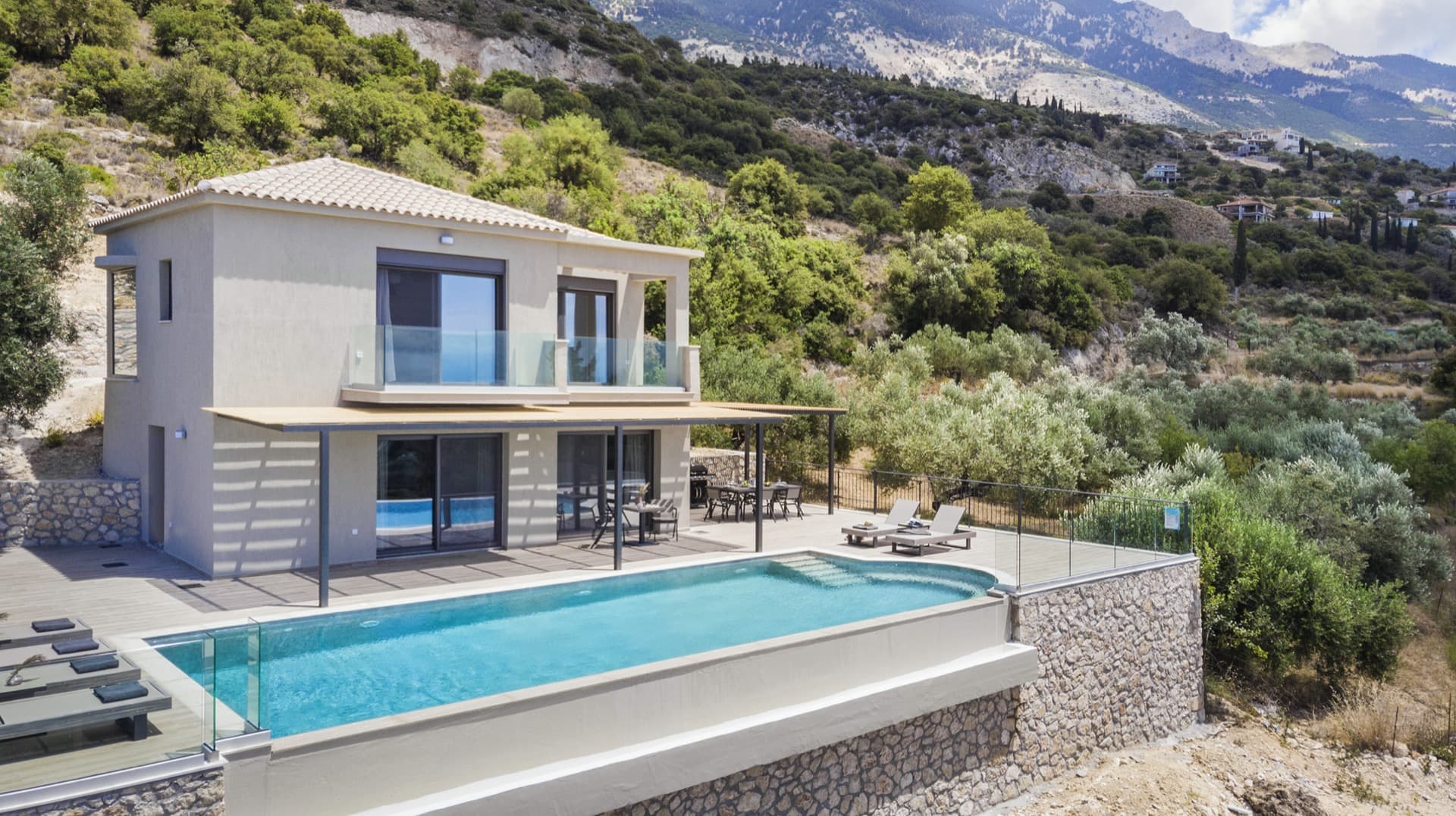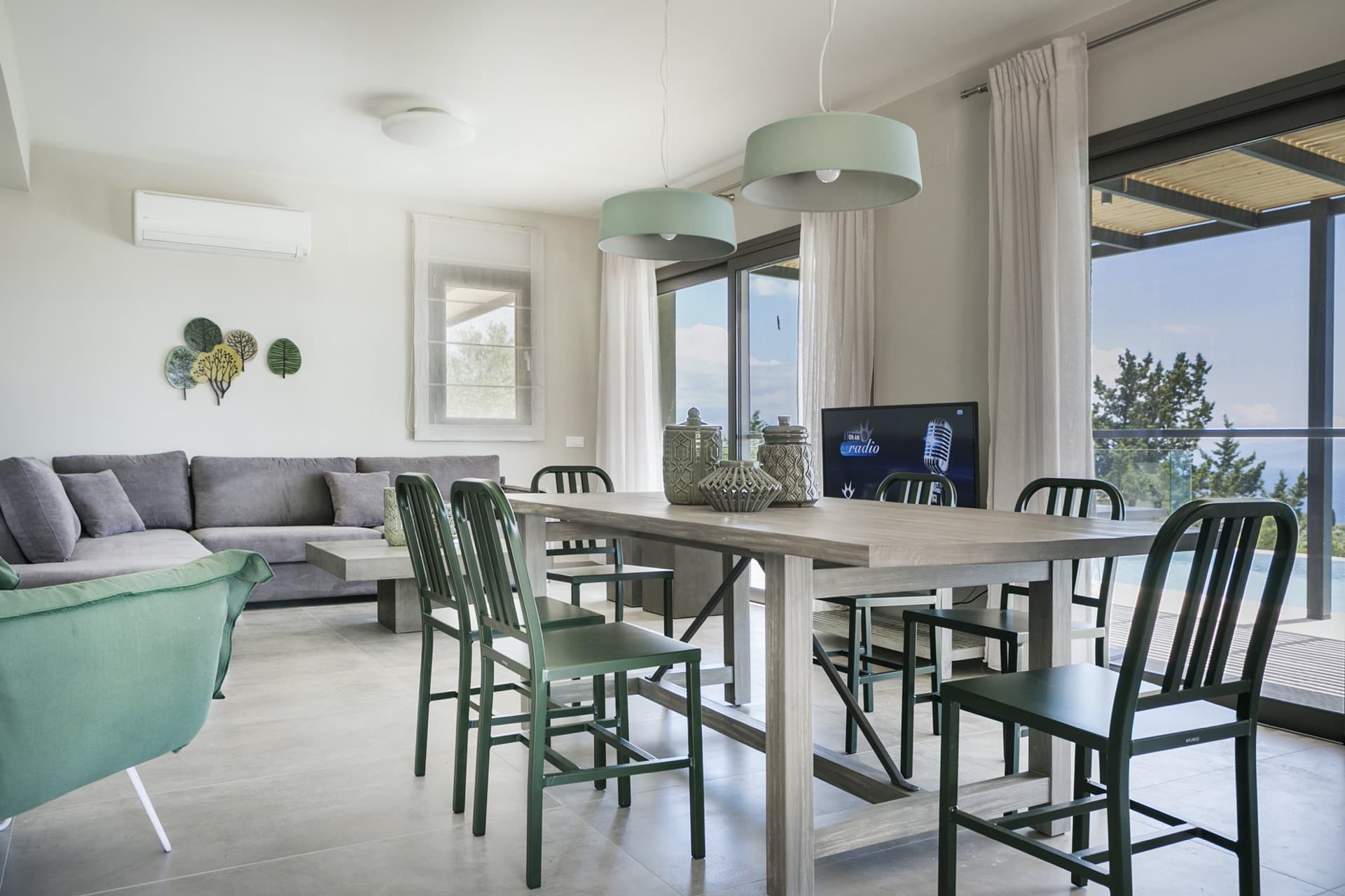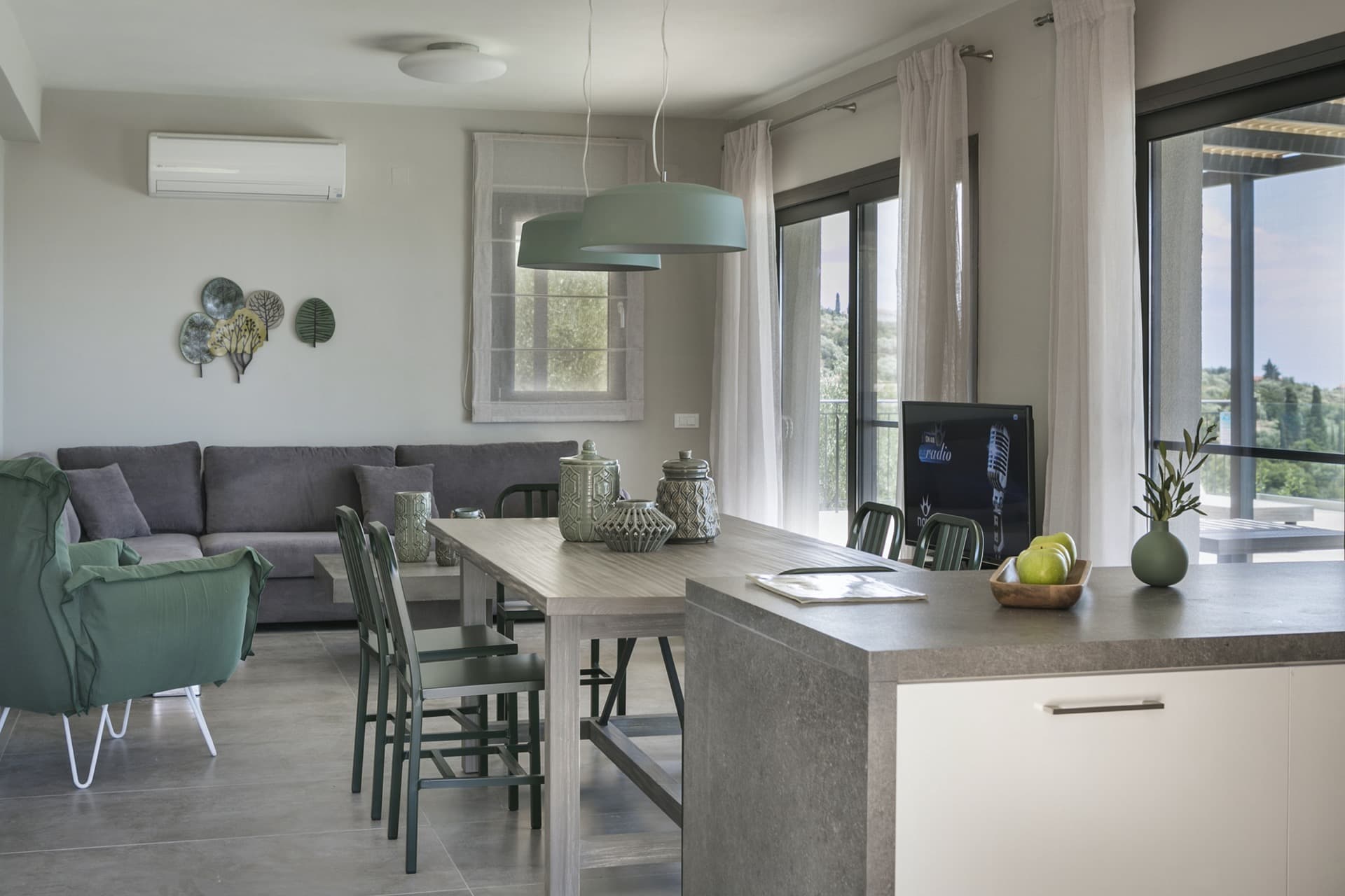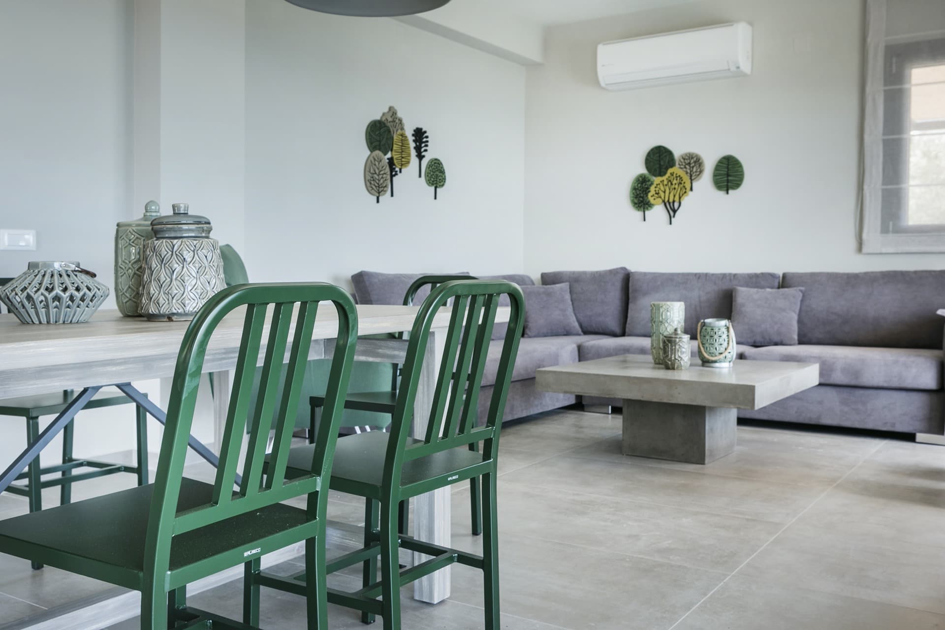 Welcome to Villa Green, your peaceful escape tucked away in the heart of Kefalonia. With deep green accents and a calming, modern design, this four-bedroom villa is made for unwinding—whether that means lazy mornings by the pool or sunset dinners with a view.