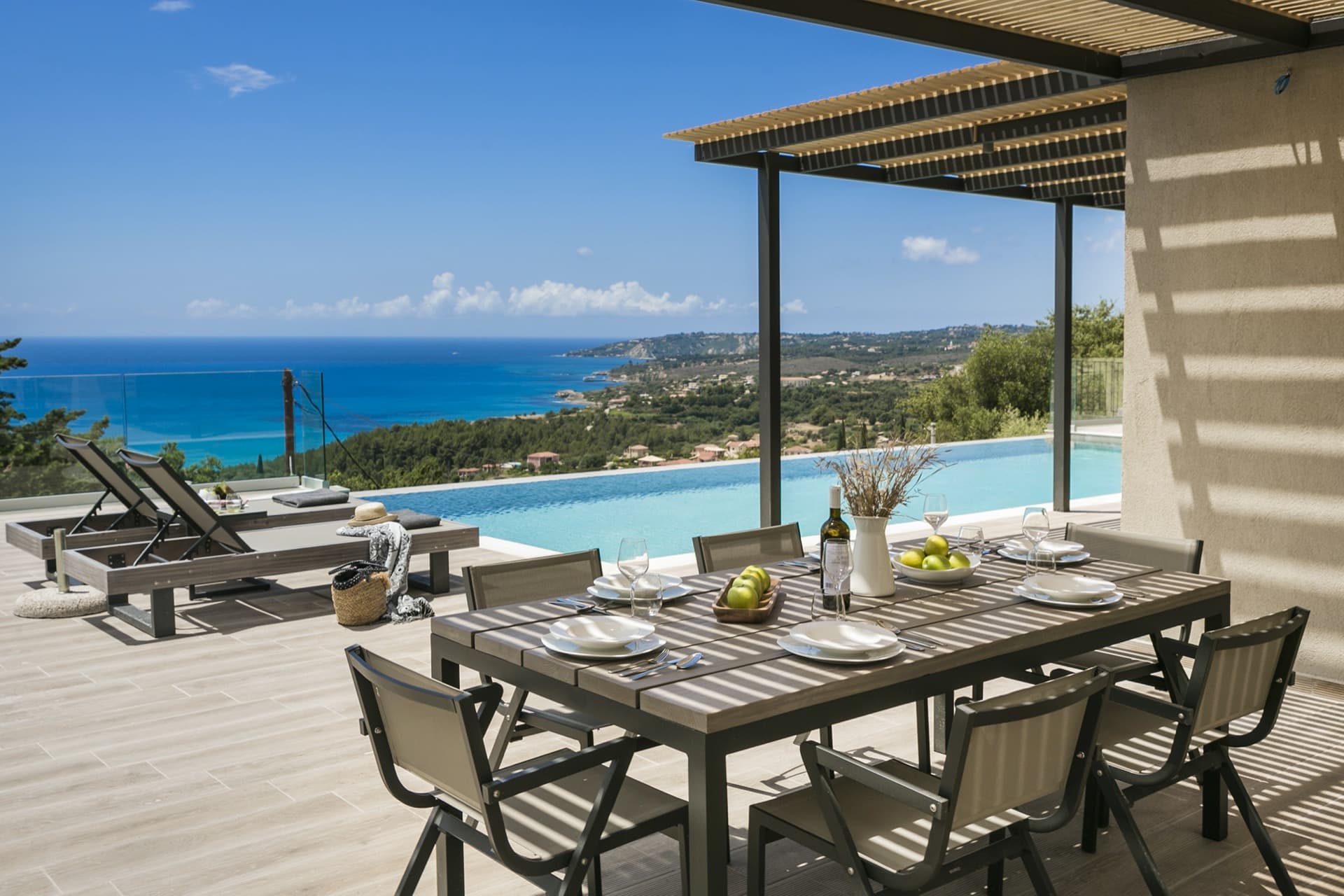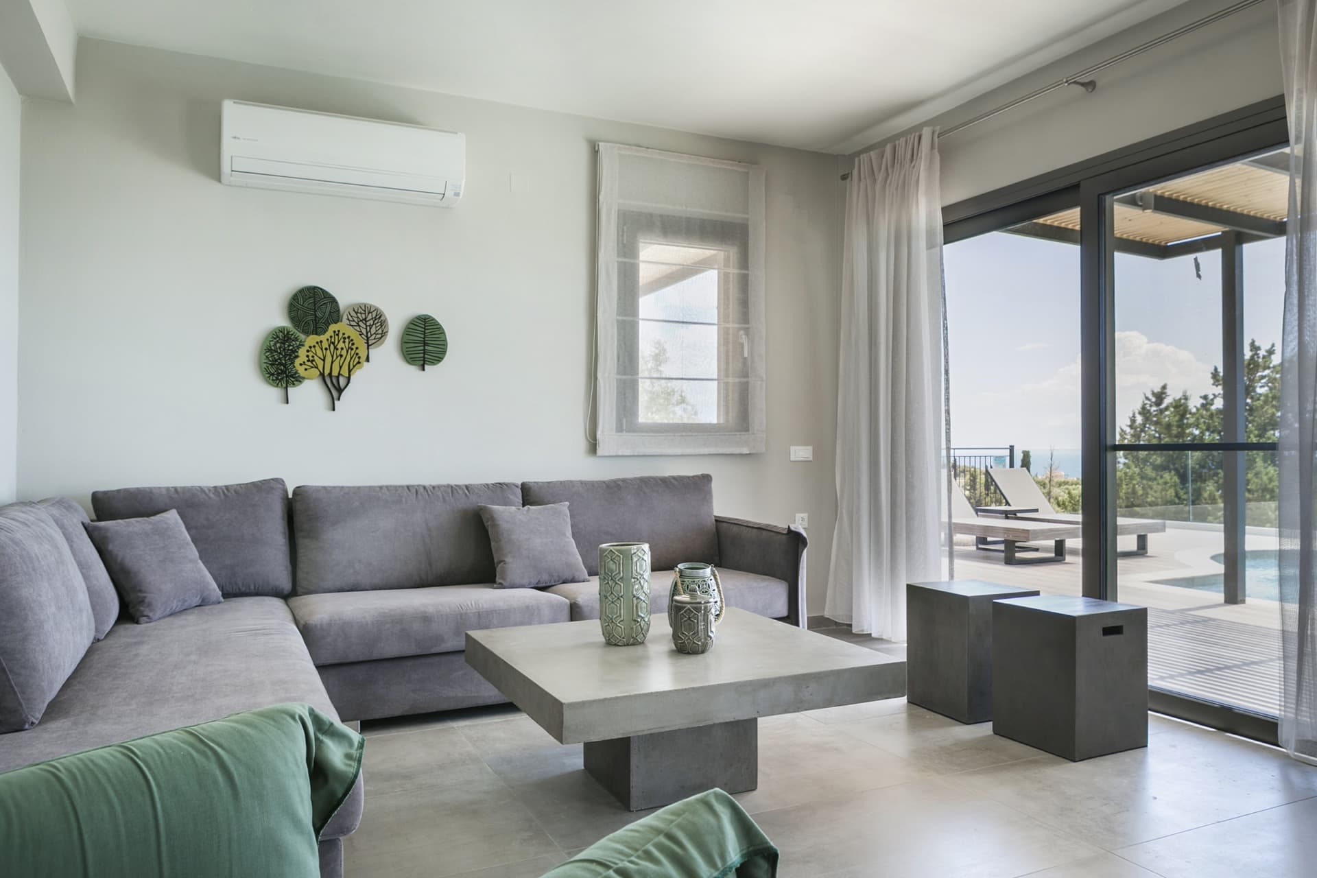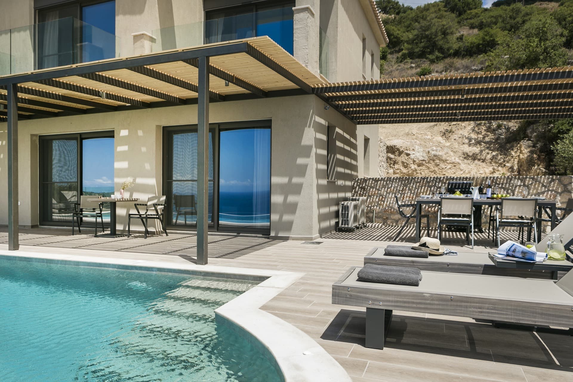 Step outside and you’re surrounded by beauty. Sink into a lounge bed, take a swim in your private pool, and soak up the sweeping views over Trapezaki Bay—from the historic Castle of St. George to the quiet coastal port below.