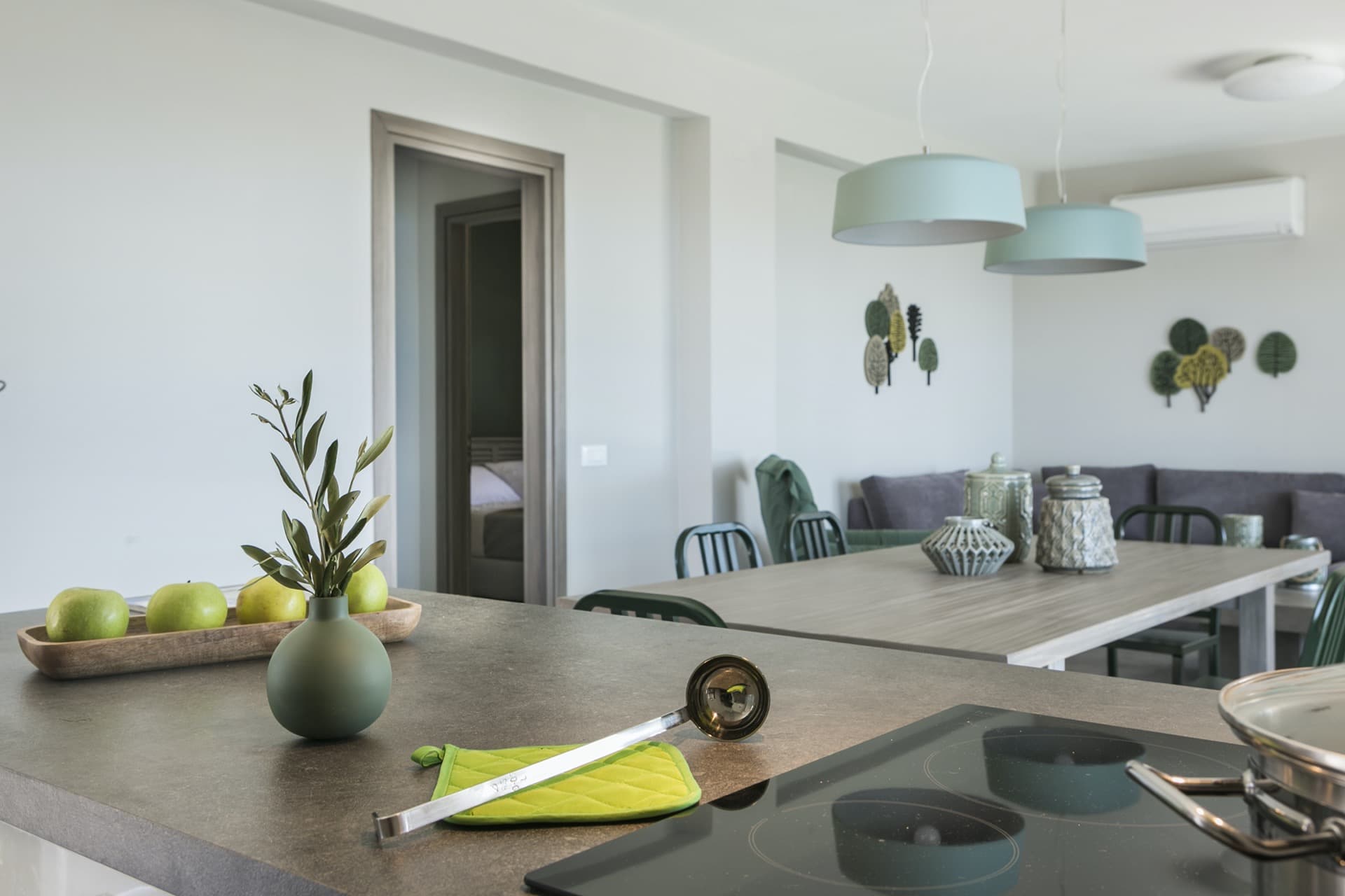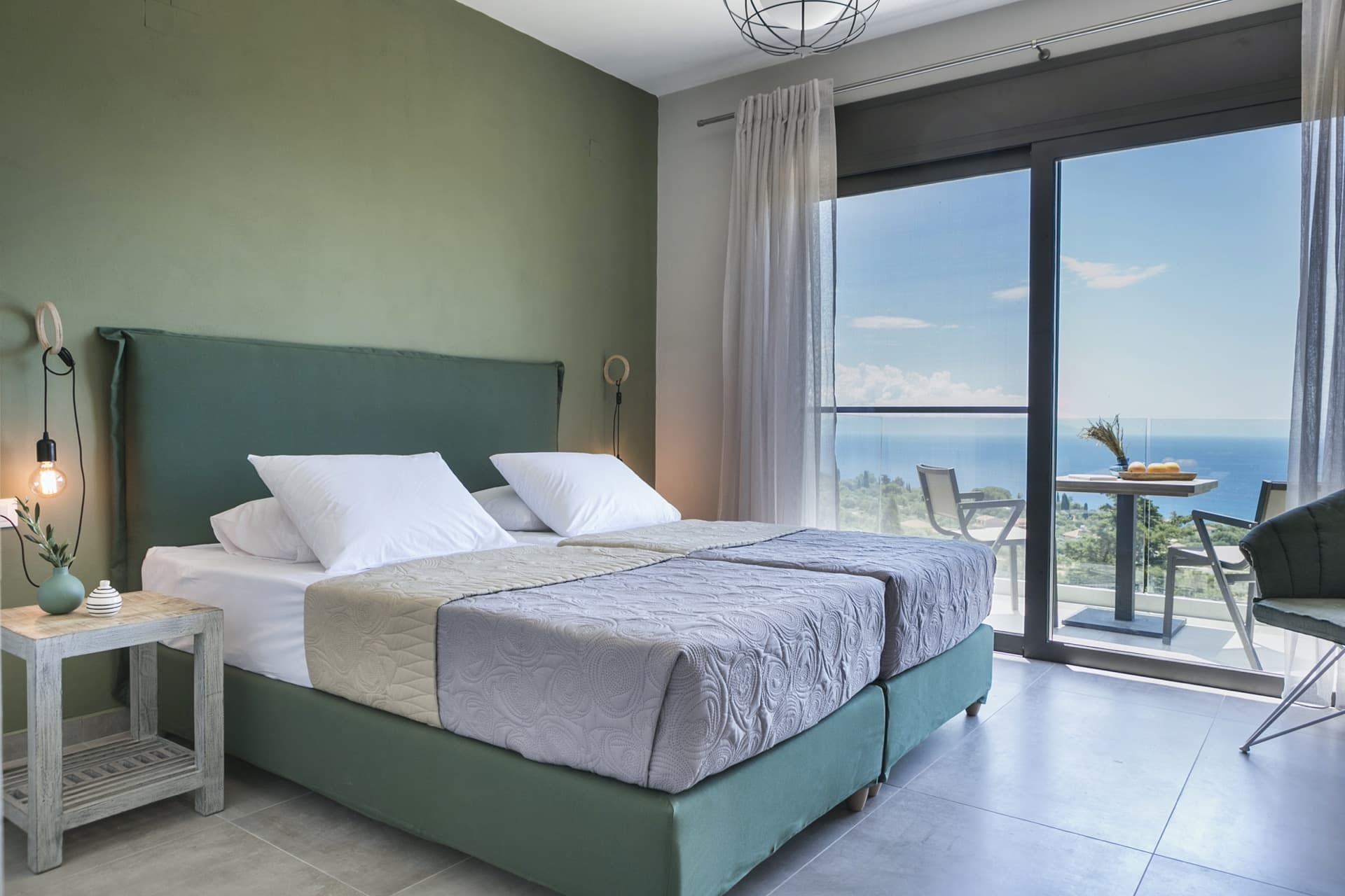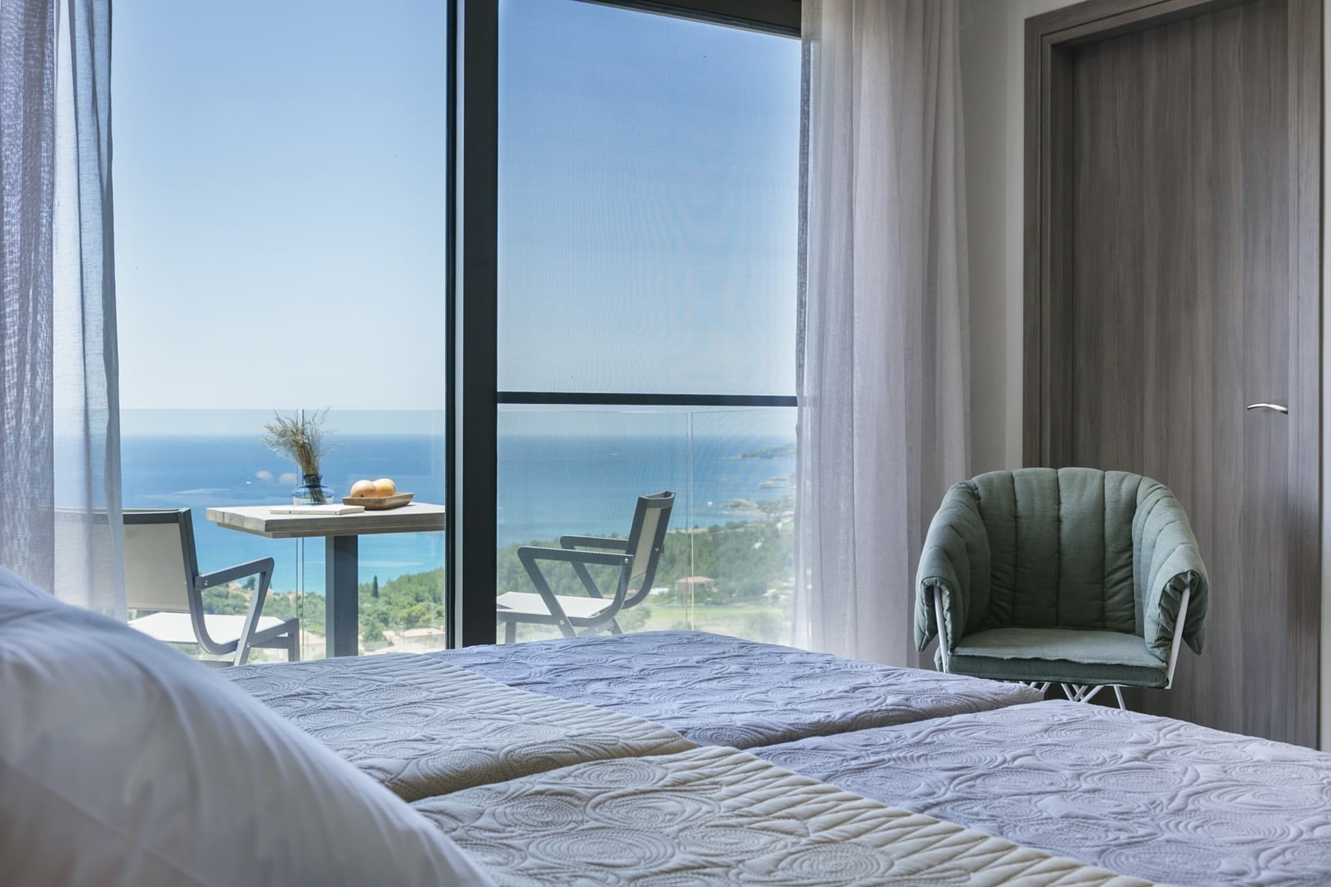 Step outside and you’re surrounded by beauty. Sink into a lounge bed, take a swim in your private pool, and soak up the sweeping views over Trapezaki Bay—from the historic Castle of St. George to the quiet coastal port below.