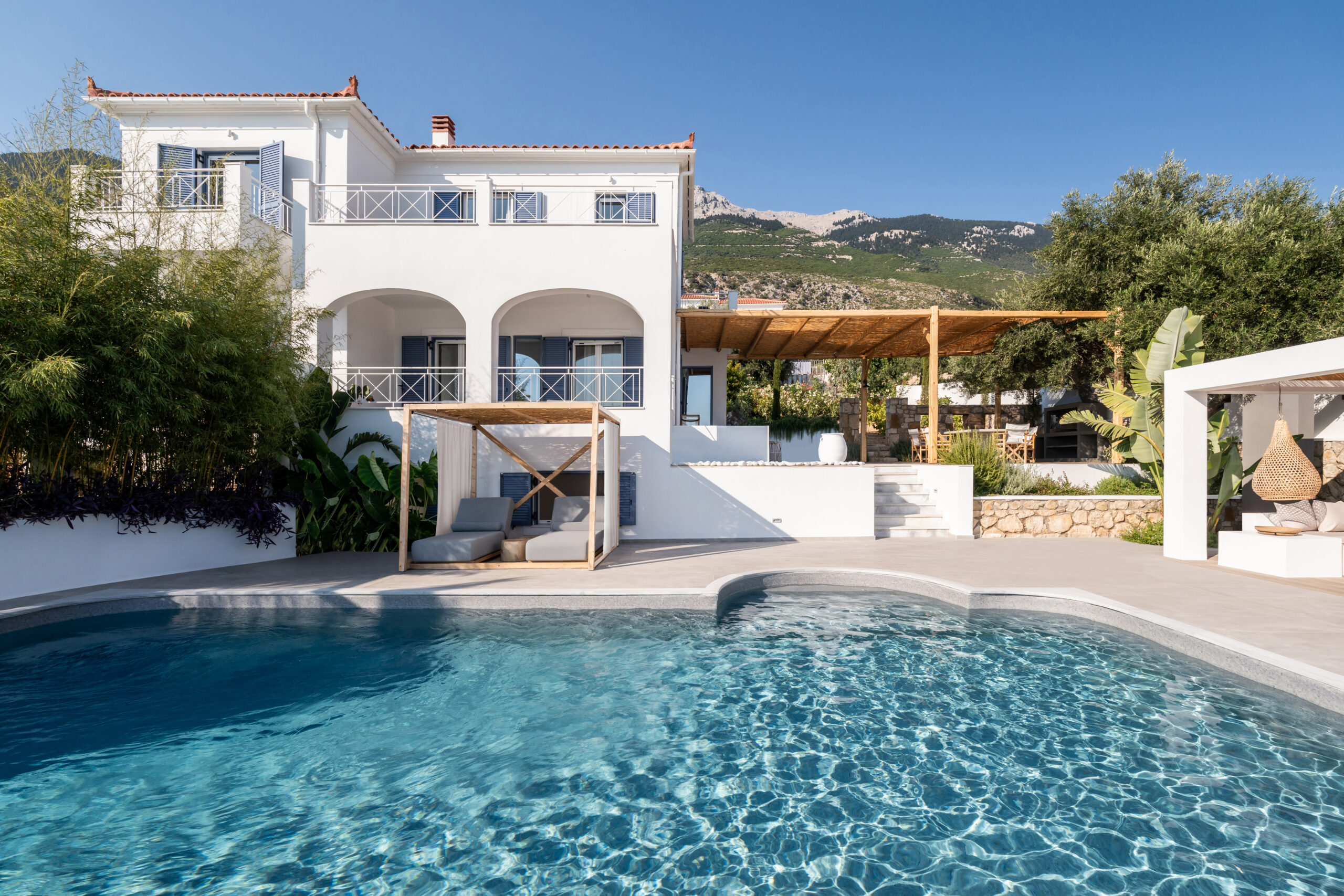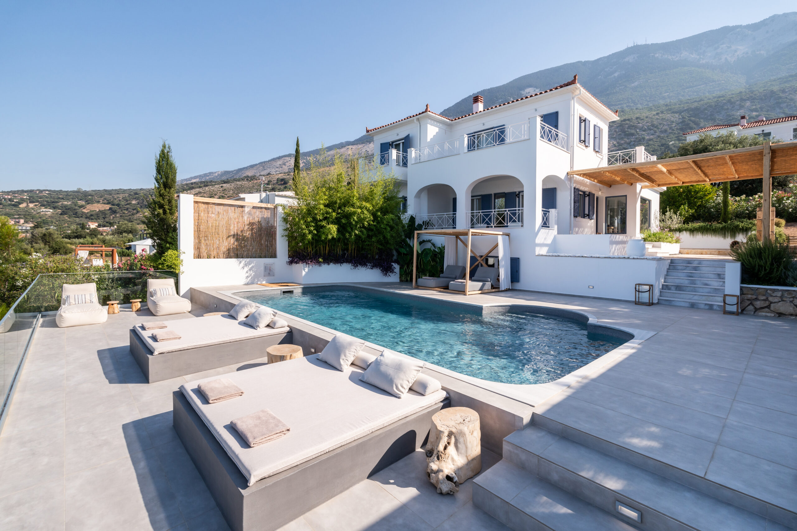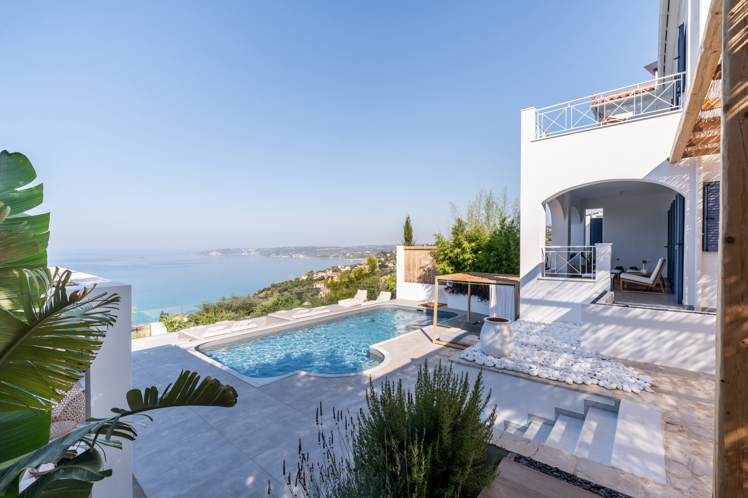 Lourdas White Villa gives its visitors the feeling of quiet luxury as it has large indoor and outdoor spaces and is able to host up to 6 people. it harmonizes with the blue of the sky and the sea.