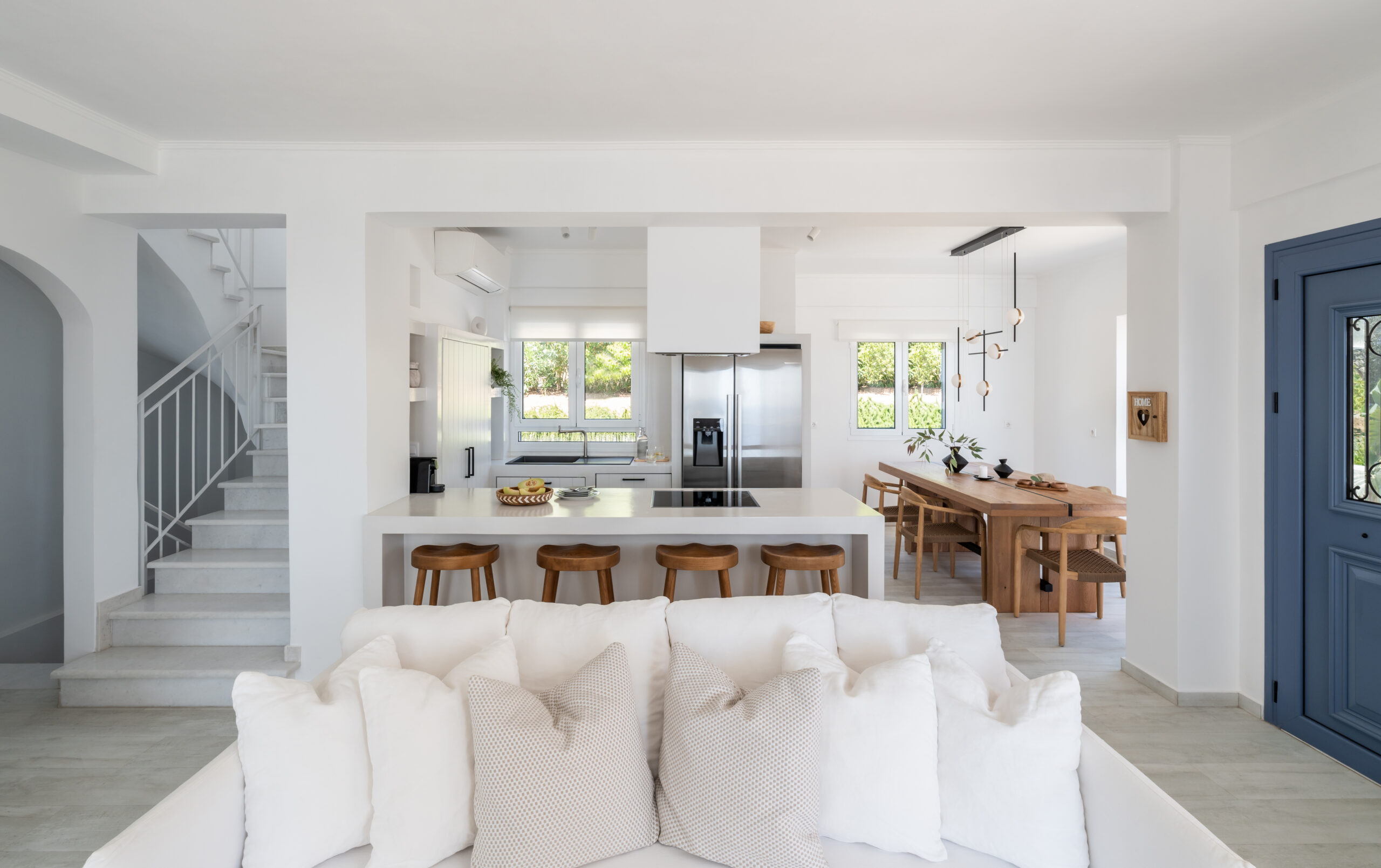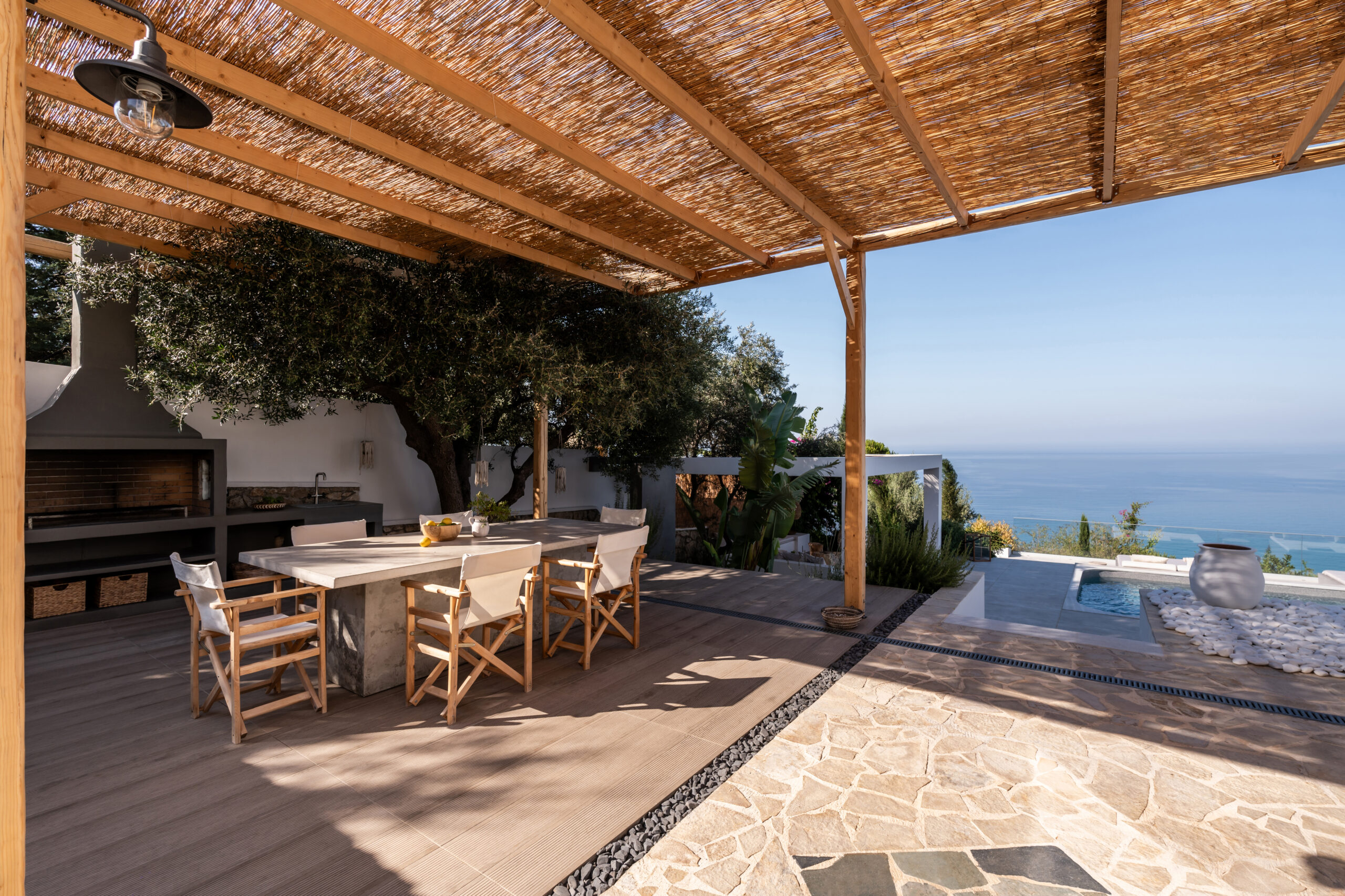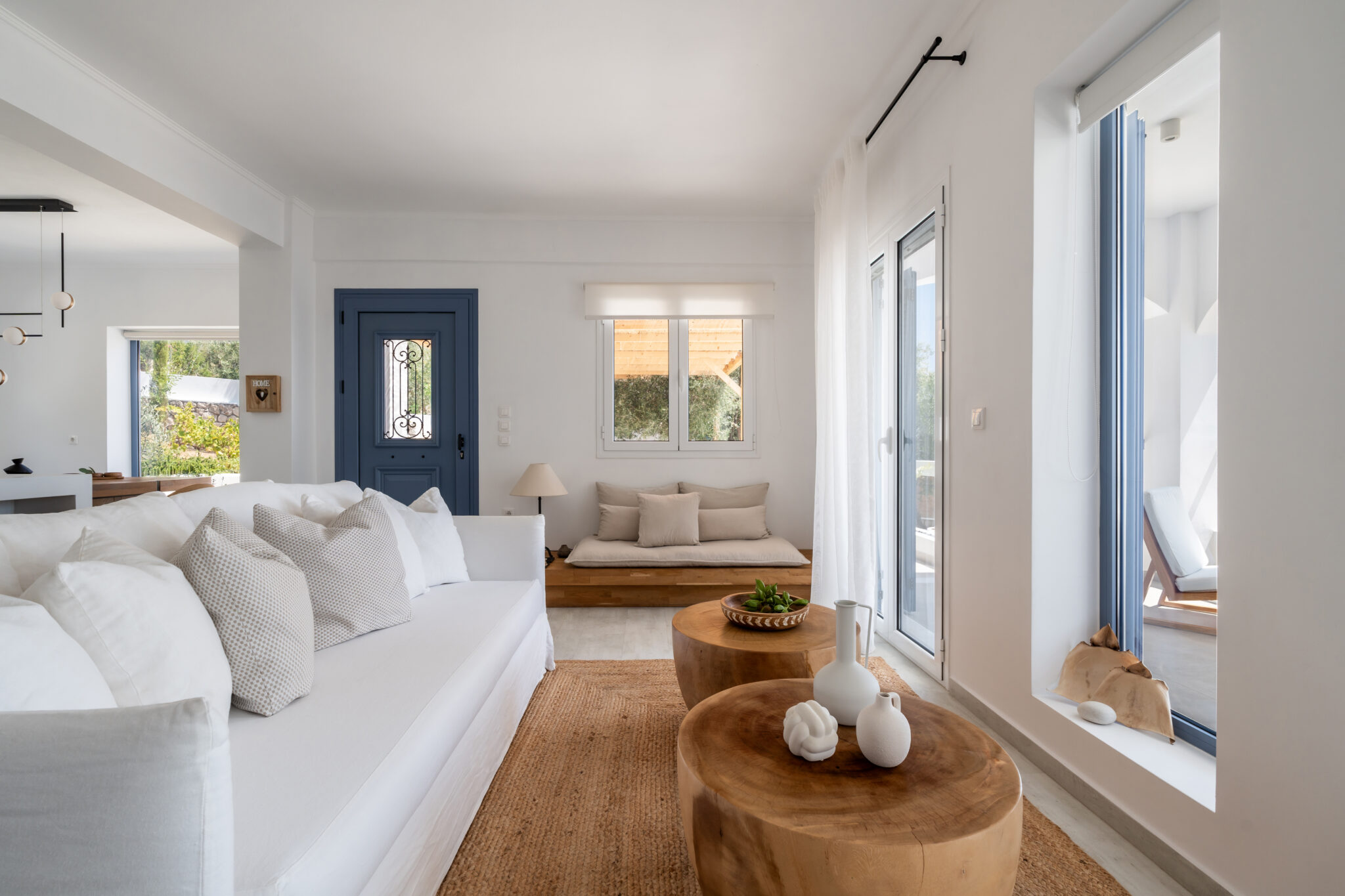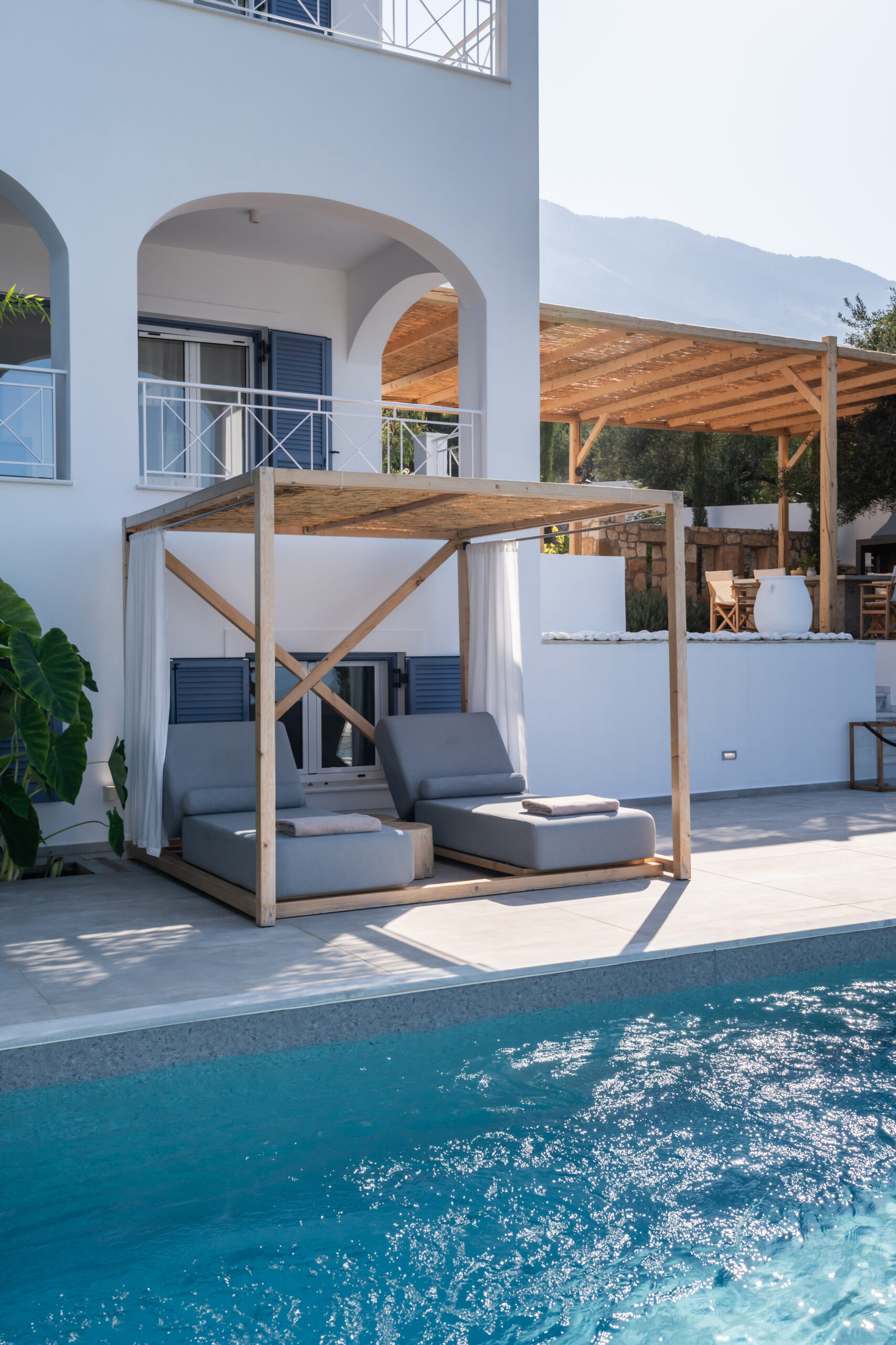 Lourdas White Villa gives its visitors the feeling of quiet luxury as it has large indoor and outdoor spaces and is able to host up to 6 people. it harmonizes with the blue of the sky and the sea.