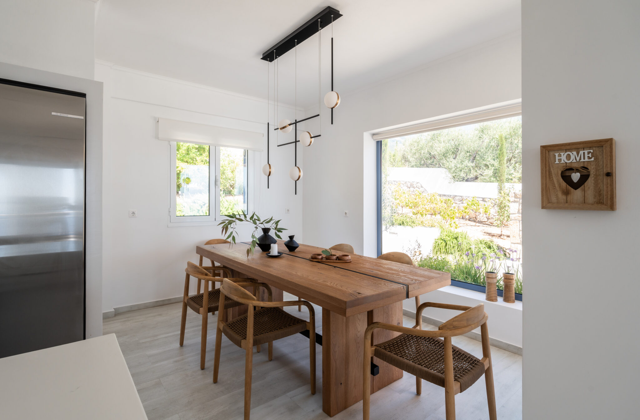 In the interior, the villa consists of 3 levels and has 3 bedrooms with ensuite bathrooms. On the ground floor there is a fully equipped kitchen (oven, microwave oven, hob, fridge, dishwasher, coffee makers, toaster, toaster, electric juicer, kettle) ), as well as dining-living room with fireplace and Smart TV